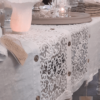 Spitzen- und Knopfläufer mit Schlaufen, um mehrere Leinentischdecken zu verbinden und eine größere Fläche Ihres Tisches zu bedecken.