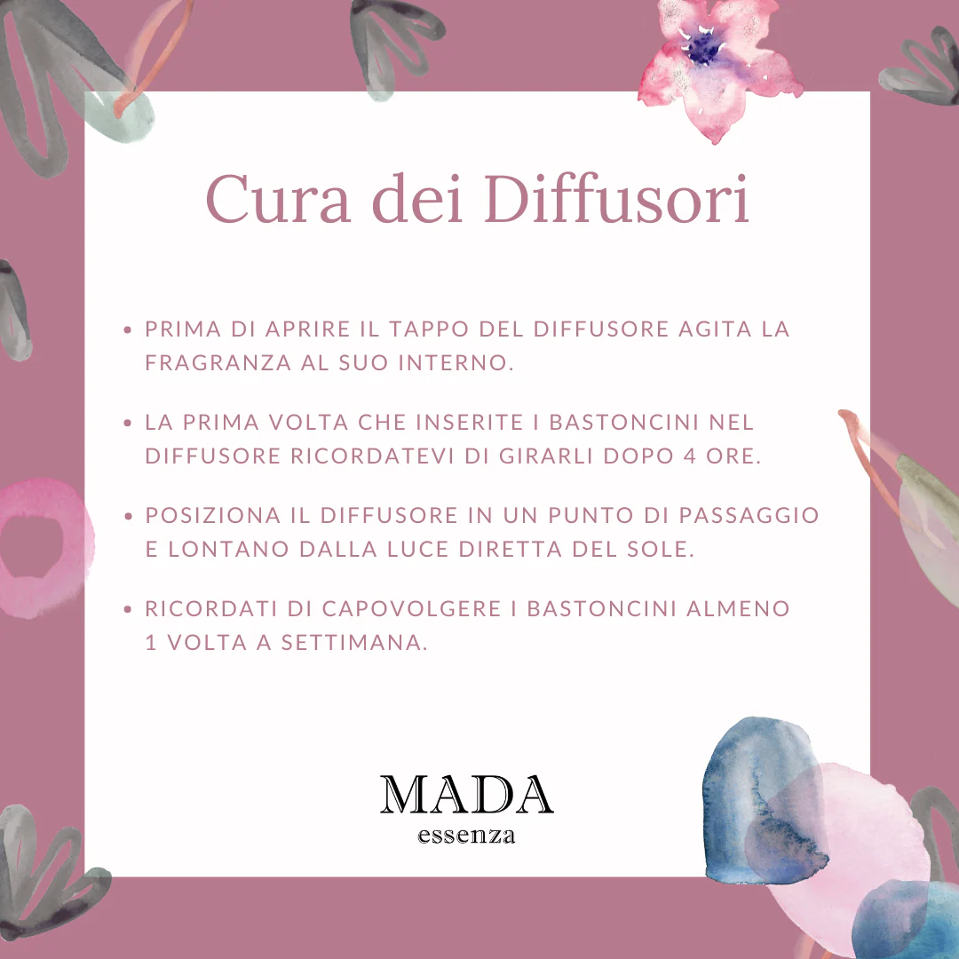 L’essence Apple & Cinnamon est diffusée de manière graduelle et constante à travers les bâtonnets, parfumant l’environnement avec élégance et transformant le diffuseur en un raffiné élément de décoration. Parfait pour la maison, le bureau ou les espaces professionnels, surtout pendant la saison automnale et hivernale.