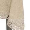Nappe rectangulaire en lin épais avec dentelle «Poema» cousue sur tous les côtés et insertion rectangulaire du logo Arte Pura. Bord avec pli. Dimensions 130×220 cm (sans la dentelle).