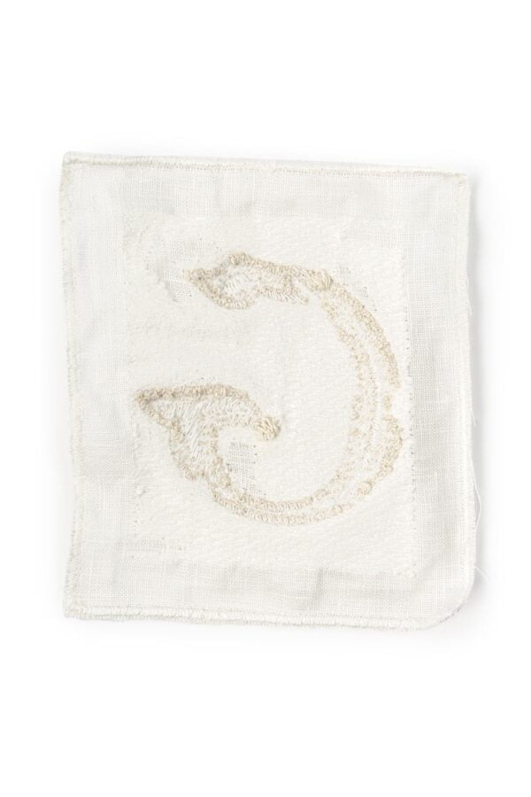 Lettera G in rilievo ricamata su lino. Utilizza questo elemento unico per arredare e personalizzare i tuoi ambienti oppure utilizzala come segnaposto nella tua mise en place.