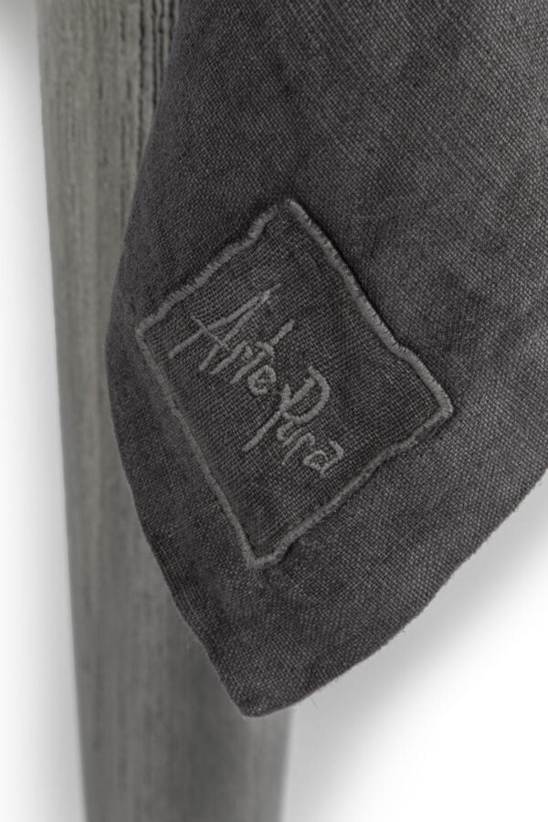 Tovaglia rettangolare in lino pesante senza cornice e inserto logo Arte Pura. Bordo con piega. Misure 130×220 cm.