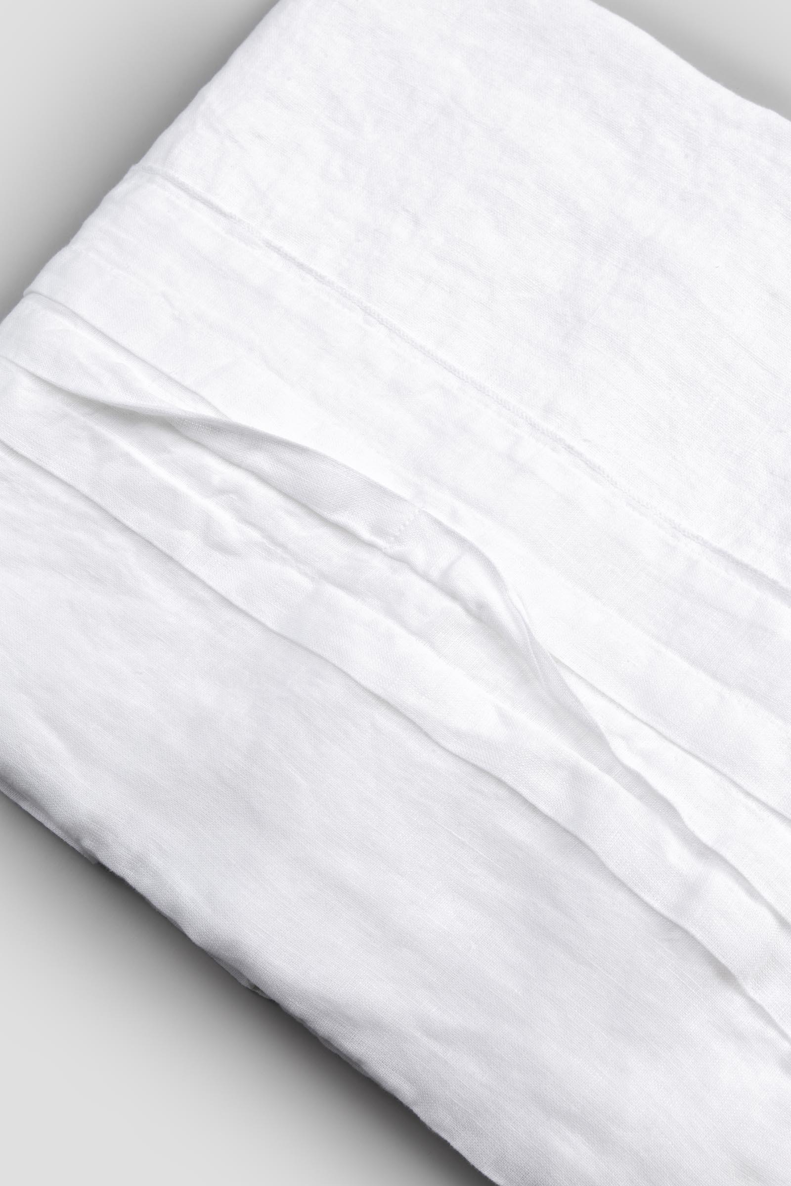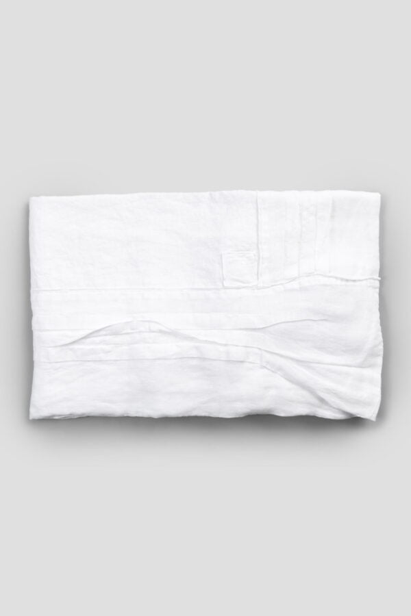 Tovaglia in lino con bordo motivo pieghe. Misure 140×200 cm.